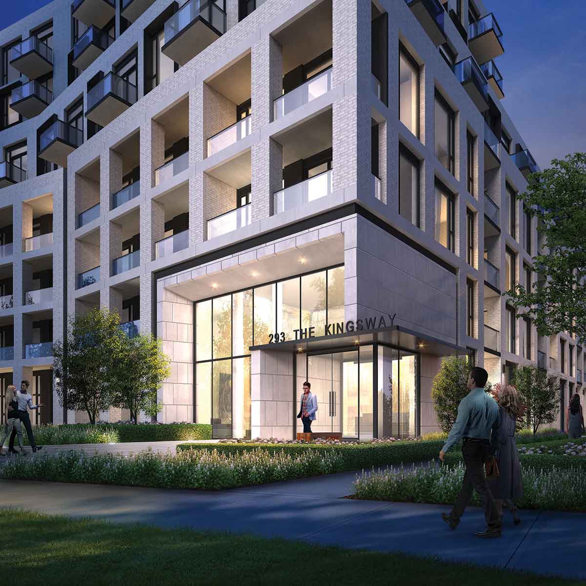 Where The Kingsway gracefully curves south towards Dundas Street, a visionary master-planned community is set to rise. An enclave of midrise buildings within a beautiful park-like setting will bring a new level of sophisticated modern living to this prime location. 293 The Kingsway is accented with lush landscaping, mature trees, courtyards and walkways, giving it the exclusivity and privacy of a gated community. Safe, tranquil, modern – an address of distinction.